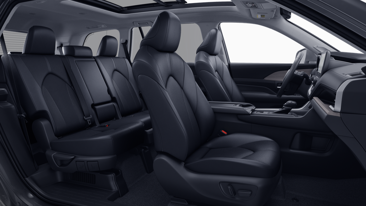 - 7-passenger seating with second-row fold-down captain's chairs and fold-down inboard armrests, adjustable headrests and two cup holders mounted on the floor; and 60/40 split, fold-down third-row seats with sliding headrests and recline function