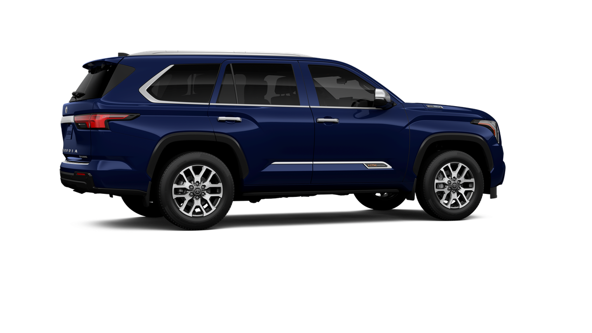 - Bright-chrome "SEQUOIA" rear door badge, chrome "1794 EDITION" door badge and garnish, door handles, window molding and mirror caps; color-keyed tailgate spoiler; black-painted overfenders