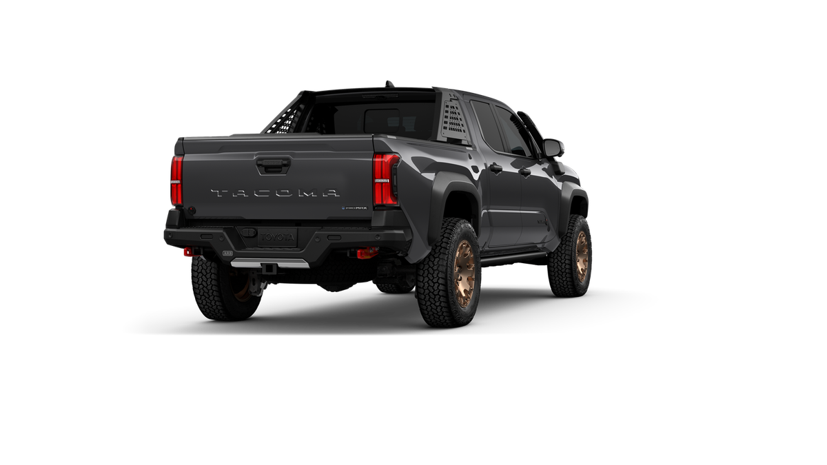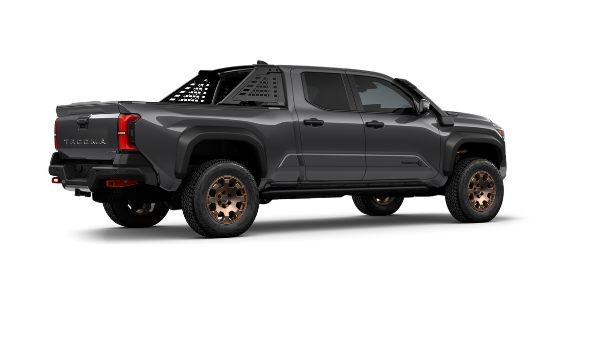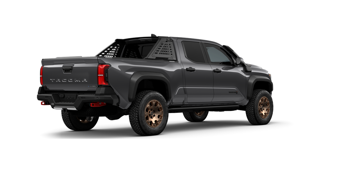 - "TACOMA" stamped power open-and-close tailgate with hands-free knee-lift assist and jam protection
