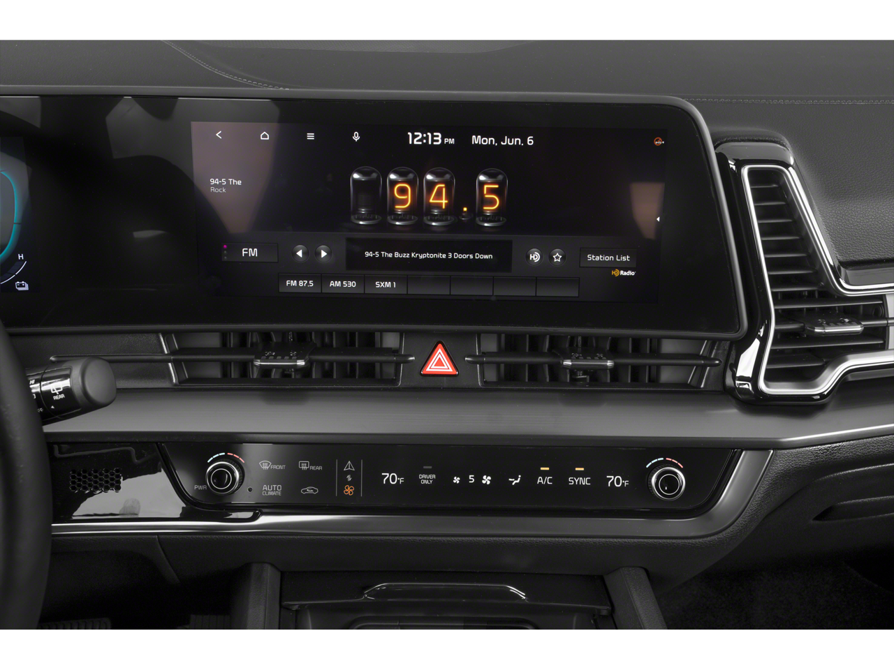 - Radio: AM/FM/HD Audio System -inc: 12.3" touchscreen w/navigation, 6 speakers, wired Apple Carplay and Android Auto, UVO telematics, voice recognition, USB, SiriusXM and Bluetooth phone and streaming audio